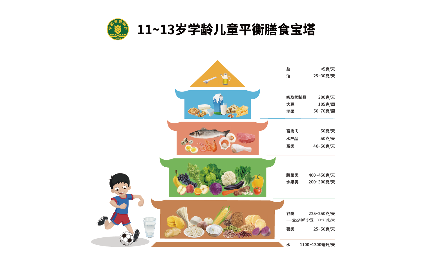 11~13岁学龄儿童平衡膳食宝塔(2022)