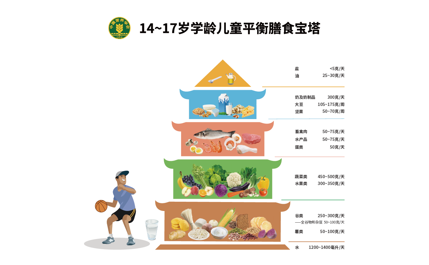 14~17岁学龄儿童平衡膳食宝塔(2022)
